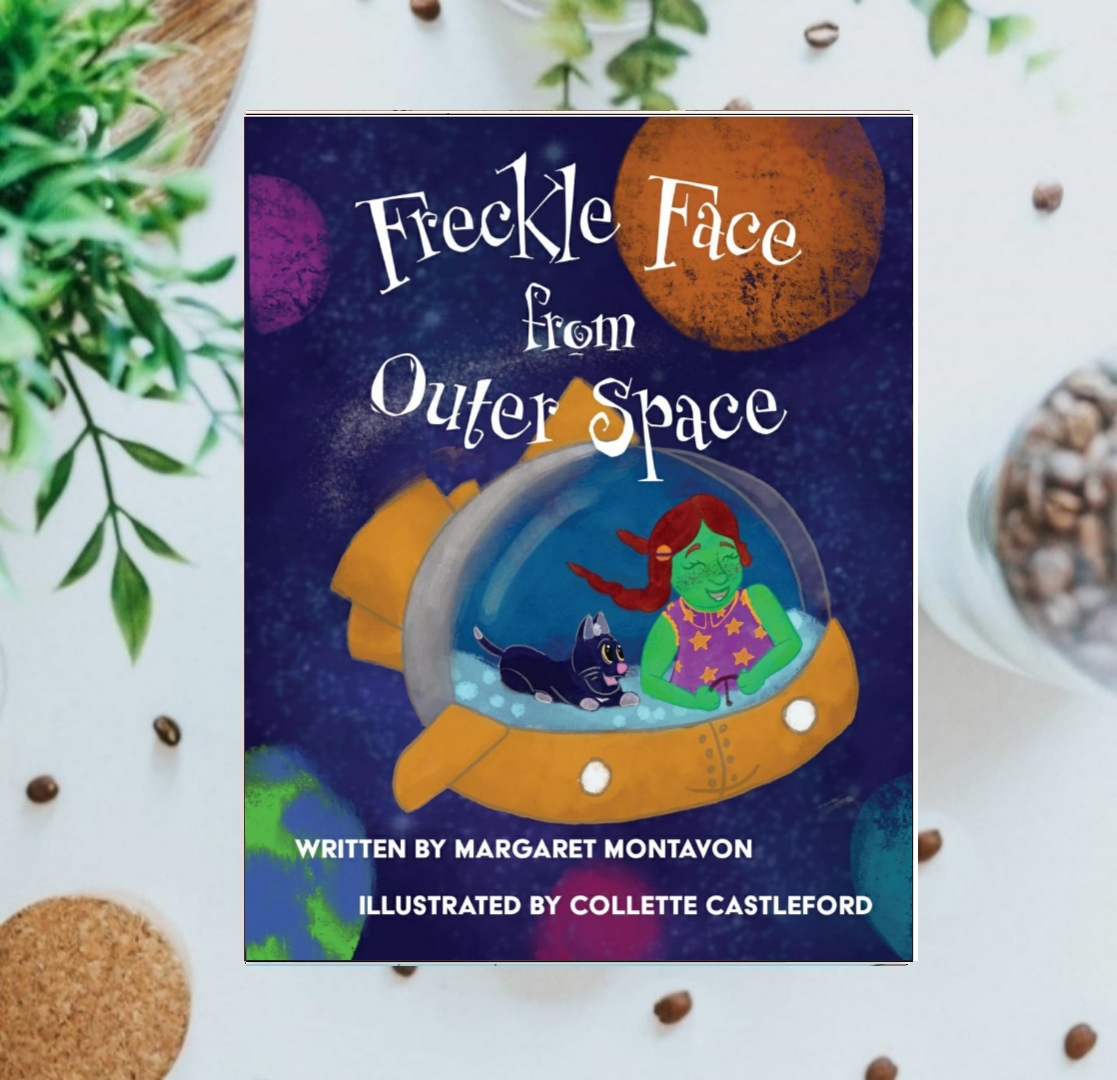 “Freckle Face From Outer Space” is a Children’s Book written by Margaret Montavon and illustrated by Collette Castleford. Story features Ally Alien who lives in the vast Milky Way with her cat named Star. Both of them go on great adventures together. One day, they went to the third planet of the Solar System. Will the behavior of creatures of this blue-green planet be nice towards Ally and Star?