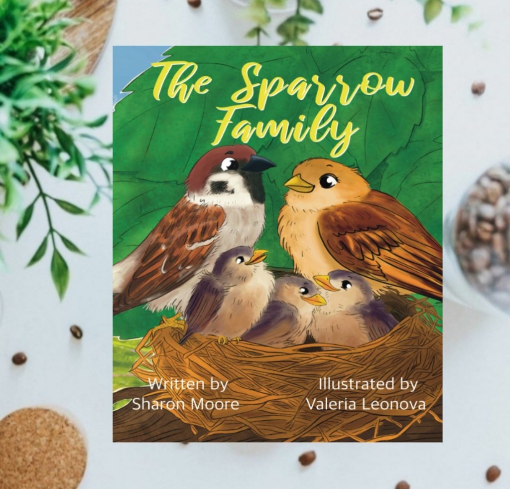 The Sparrow Family written by the author Sharon Moore and illustrated by Valeria Leonova is an interesting Children’s Book. The story features a Mom and Dad Sparrow along with their three little sparrows. Mom Sparrow kept her little ones warm and Daddy Sparrow was on food patrol.