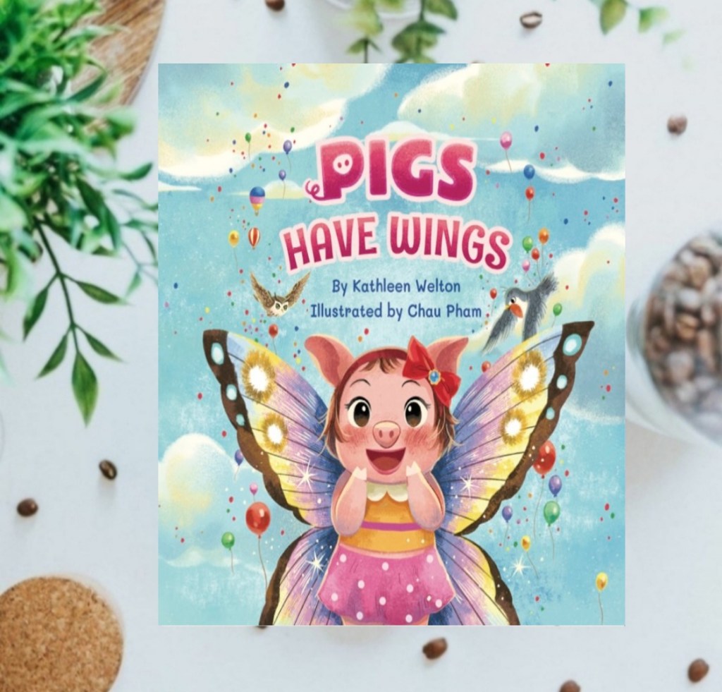 “Pigs Have Wings” is a children’s book penned by the author Kathleen Welton and illustrated by Chau Pham. The main character of the story is a petite pig named Miz Peg. She has short and round legs.